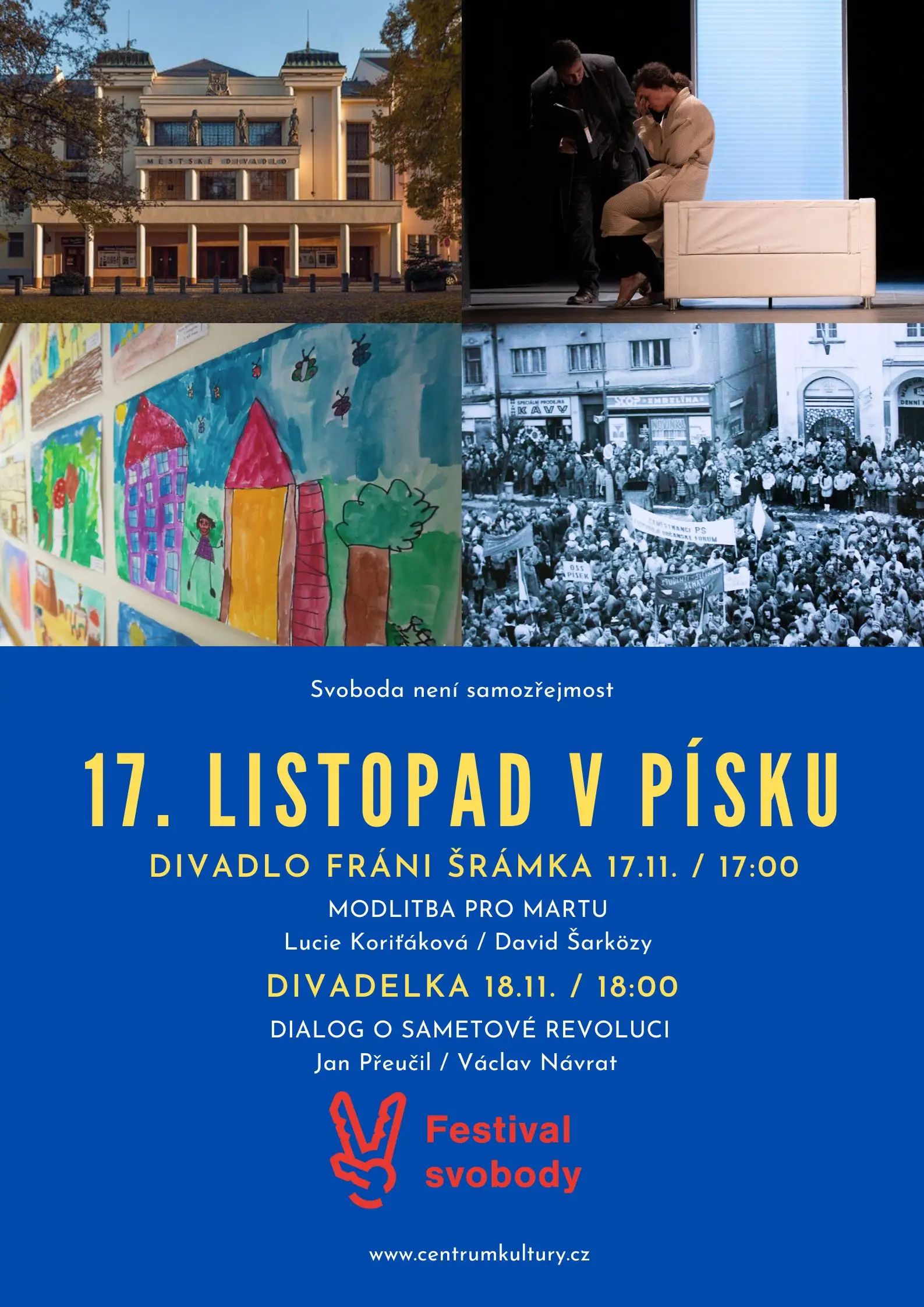 Zveme vás na listopadové oslavy, které budou probíhat 17. listopadu před Divadlem Fráni Šrámka a 18. listopadu v Divadelce.