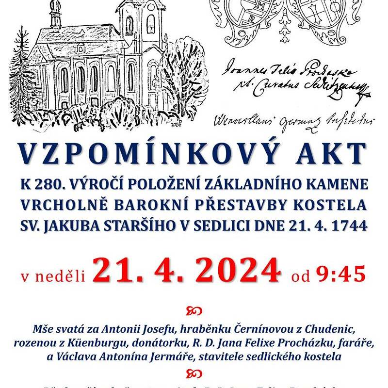 Vzpomínkový akt k 280. výročí položení základního kamene vrcholně barokní přestavby kostela sv. Jakuba Většího v Sedlici
