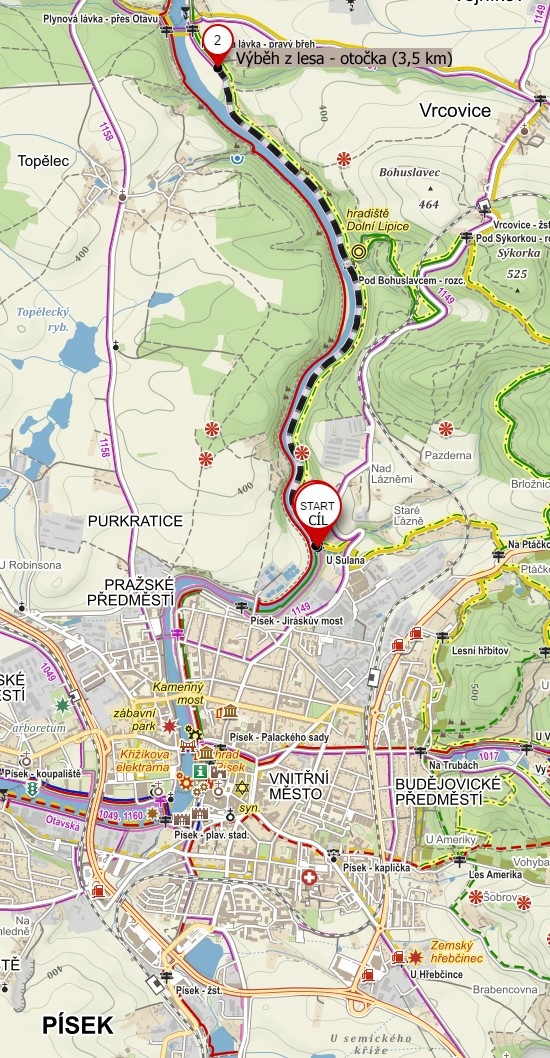 Jak se dostanete na start:Autem k Jiráskovu mostu, zde, nebo v přilehlých ulicích je nutné zaparkovat a poté cca 600 m pěšky po cyklostezce po proudu Otavy až k Hospodě U Sulana