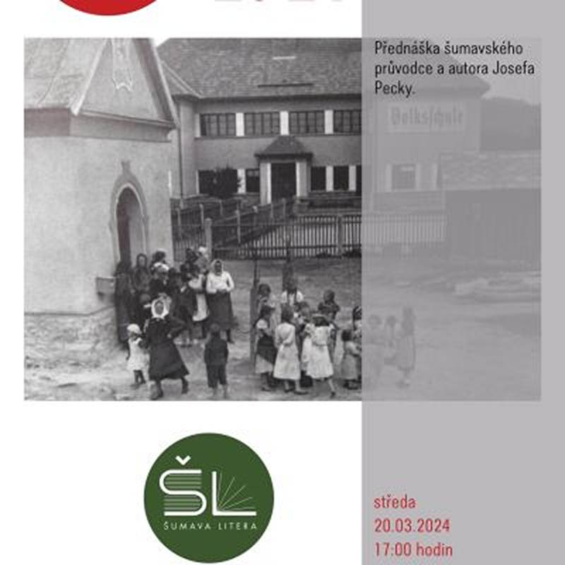 Přednáška šumavského průvodce a autora Josefa Pecky. Sál