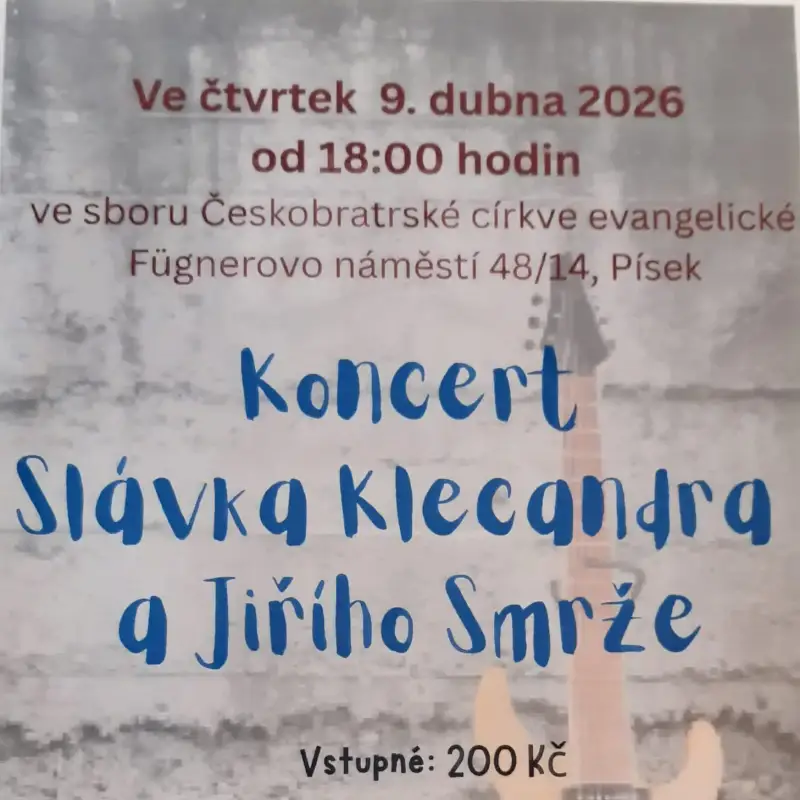 Dovolujeme si vás pozvat na koncert do kostela farnosti ČCE v Písku. Večerem nás bude provázet pan Slávek Klecandra a pan Jiří Smrž. Těšíme se na Vás.
