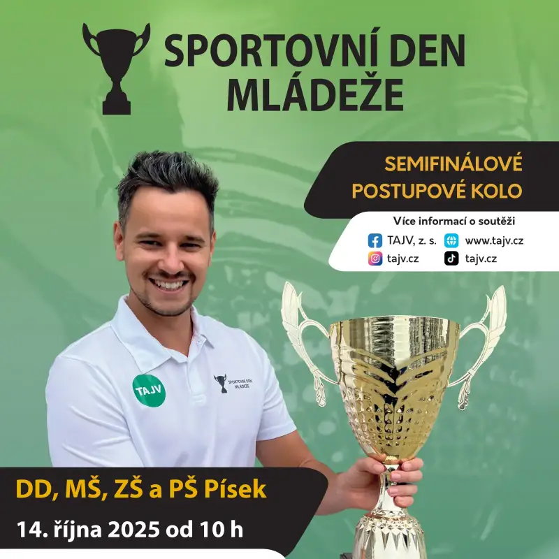 Úterý 14. 10. 2025Sportovní den mládežePísek, ZŠ Edvarda Beneše