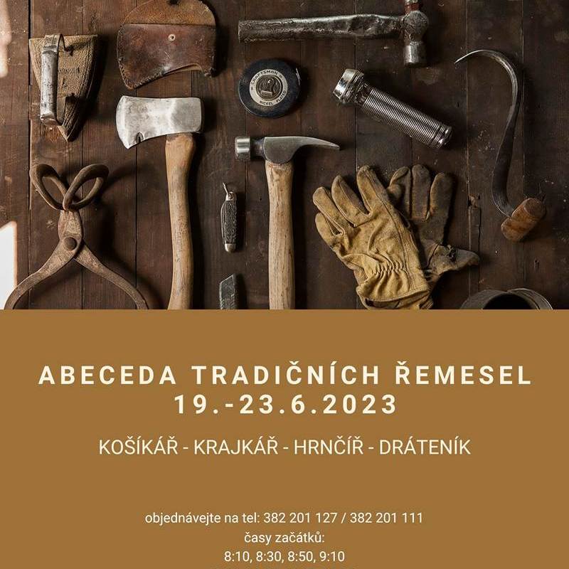 Akce je určena žákům na konci školního roku. K vidění bude práce košíkáře, krajkářek, hrnčíře a dráteníka. Třída bude postupovat po jednotlivých stanovištích, kde stráví vždy zhruba 20 minut; na posledním stanovišti u dráteníka si každý vyrobí vlastní výrobek. Návštěva tedy vyjde přibližně na hodinu a půl. Programy začínají vždy po 20 minutách a je nutné, aby byla třída v čase začátku již připravena nastoupit na první stanoviště - prosíme, abyste dorazili s předstihem kvůli šatnám, placení, toaletám atp. Časy začátků programu jsou: 8:10, 8:30, 8:50, 9:10, 9:50, 10:10, 10:30 a 10:50. Vstupné 40 Kč / žák
