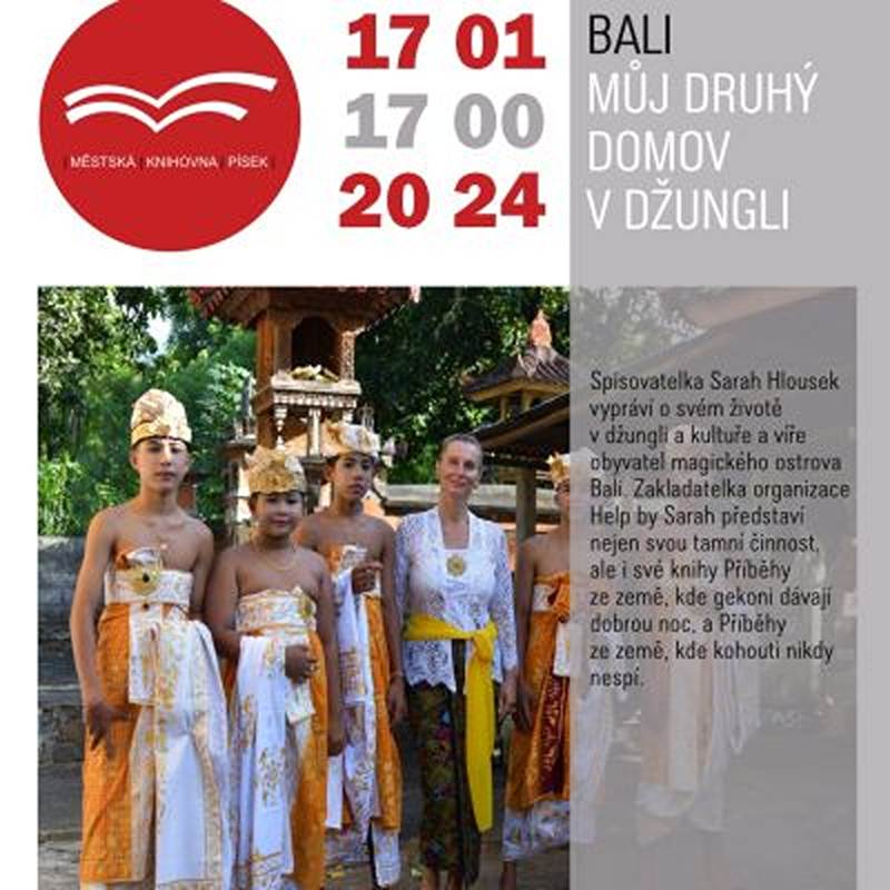 Spisovatelka Sarah Hlousek vypráví o svém životě v džungli a kultuře a víře obyvatel magického ostrova Bali. Zakladatelka organizace Help by Sarah představí nejen svou tamní činnost, ale i své knihy Příběhy ze země, kde gekoni dávají dobrou noc, a Příběhy ze země, kde kohouti nikdy nespí.