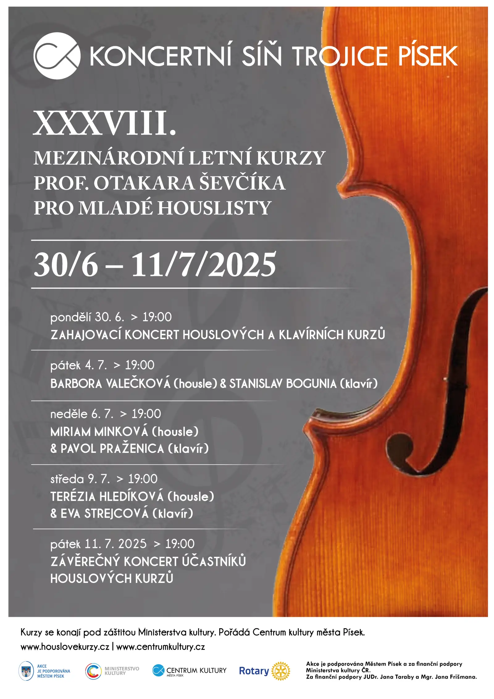 Koncert houslistky Barbory Valečkové proběhne 4. července, na klavír ji doprovodí profesor Stanislav Bogunia, který je považován za utajený klenot české hudby. Koncert probíhá v rámci Píseckého kulturního léta, jehož součástí jsou Mezinárodní letní kurzy profesora Otakara Ševčíka pro mladé houslisty. Kurzy se konají pod záštitou Ministerstva kultury.