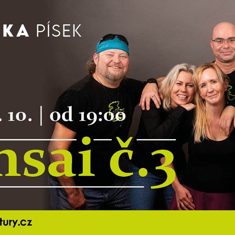 Českobudějovická folková skupina zahraje v Divadelce od 19 hodin. Skupinu založili před více jak dvaceti lety studenti Jihočeské univerzity. Již název vypovídá o spojení s odkazem folkové Bonsaie, která v letech 1983 a 1984 získala Portu. Bonsai č.3 se snaží vzkřísit a oprášit jejich písně. Hraje však tak trochu po svém, není revival kopírující notu po notě. V repertoáru převažují upravené verze skladeb Bonsai a zvolna do něj pronikají vlastní autorské pokusy.
