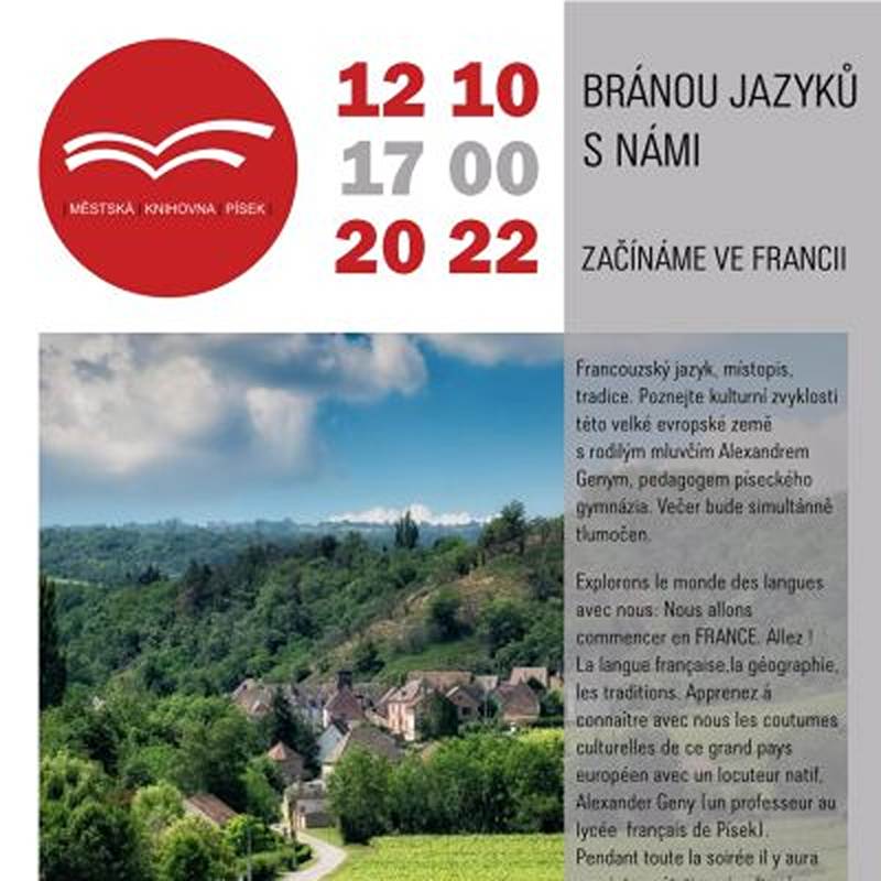 Francouzský jazyk, místopis, tradice. Poznejte kulturní zvyklosti této velké evropské země s rodilým mluvčím Alexandrem Genym, pedagogem píseckého gymnázia. Večer bude simultánně tlumočen.