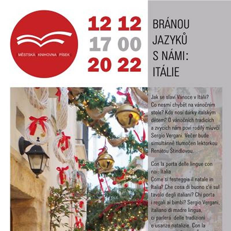 Jak se slaví Vánoce v Itálii? Co nesmí chybět na vánočním stole? Kdo nosí dárky italským dětem? O vánočních tradicích a zvycích nám poví rodilý mluvčí Sergio Vergani. Večer bude simultánně tlumočen.