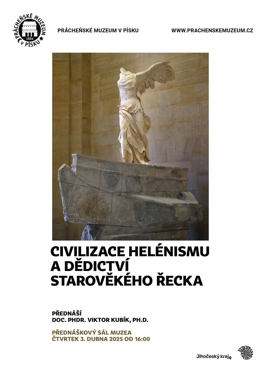 3. dubna do Prácheňského muzea opět zavítá historik umění Viktor Kubík, aby uzavřel svůj jarní cyklus o antickém řeckém umění. V čase se posune až do období helénismu, kdy byl řecký svět ovládnut Římem.