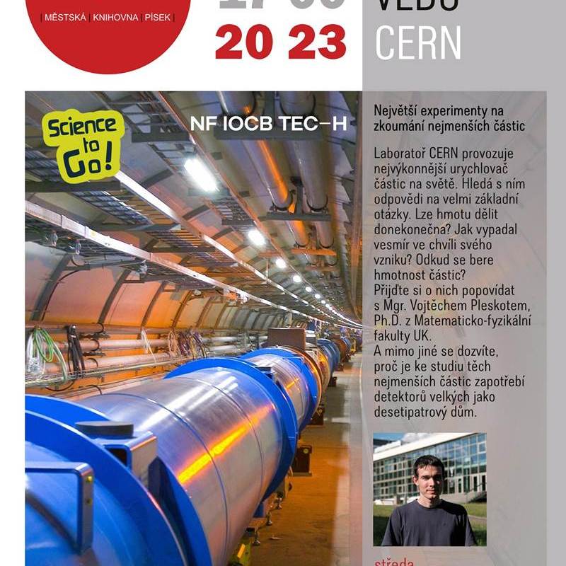 Laboratoř CERN provozuje nejvýkonnější urychlovač částic na světě. Hledá s ním odpovědi na velmi základní otázky. Lze hmotu dělit donekonečna? Jak vypadal vesmír ve chvíli svého vzniku? Odkud se bere hmotnost částic? Přijďte si o nich popovídat s Mgr. Vojtěchem Pleskotem, Ph.D. z Matematicko-fyzikální fakulty UK.