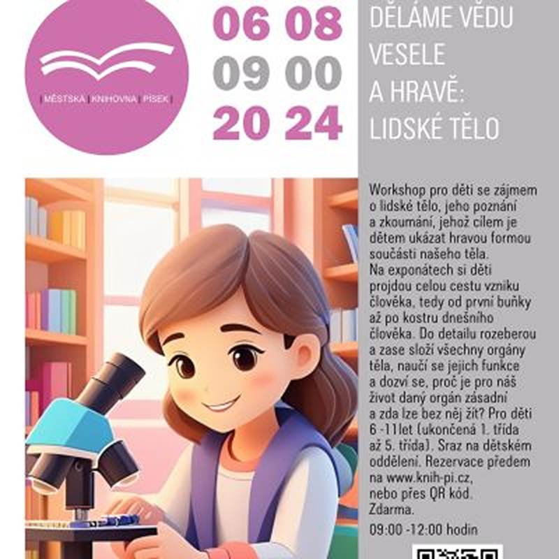 Workshop pro děti se zájmem o lidské tělo, jeho poznání a zkoumání, jehož cílem je dětem ukázat hravou formou součásti našeho těla. Na exponátech si děti projdou celou cestu vzniku člověka, tedy od první buňky až po kostru dnešního člověka. Pro děti 6-11 let. Zdarma. Sraz na dětském oddělení. Rezervace zde.