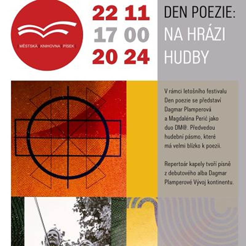 V rámci letošního festivalu Den poezie se představí Dagmar Plamperová a Magdaléna Perić jako duo DM (zavináč) . Předvedou hudební pásmo, které má velmi blízko k poezii. Repertoár kapely tvoří písně z debutového alba Dagmar Plamperové Vývoj kontinentu.
