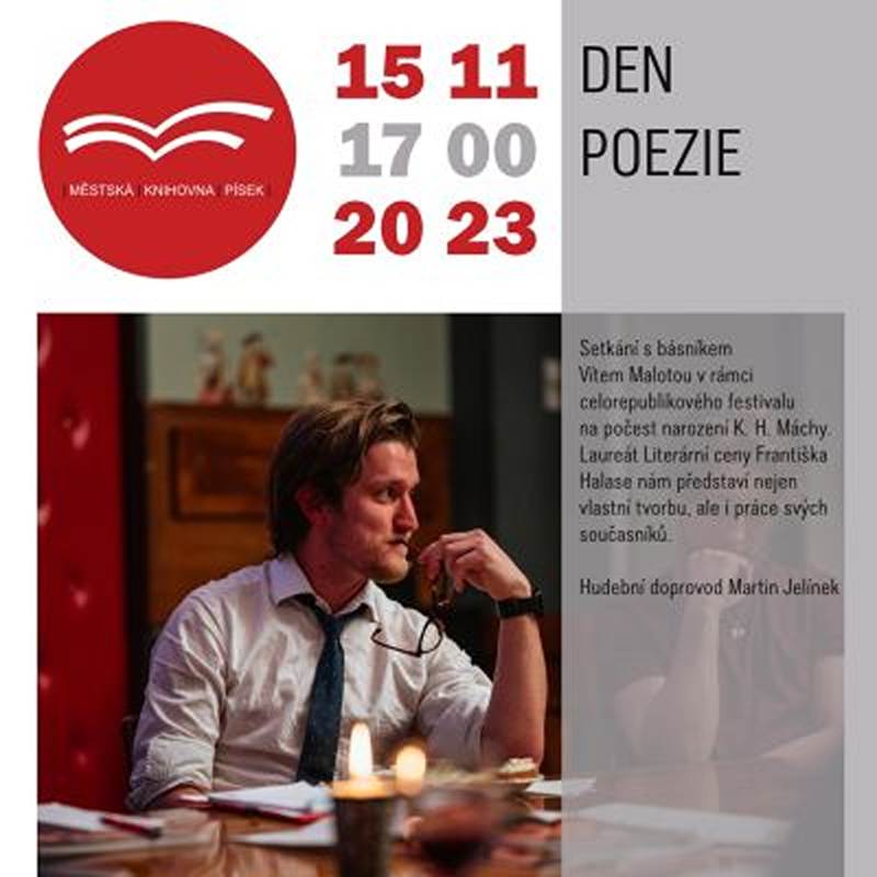 Setkání s básníkem Vítem Malotou v rámci celorepublikového festivalu na počest narození K. H. Máchy. Laureát Literární ceny Františka Halase nám představí nejen vlastní tvorbu, ale i práce svých současníků. Hudební doprovod Martin Jelínek.