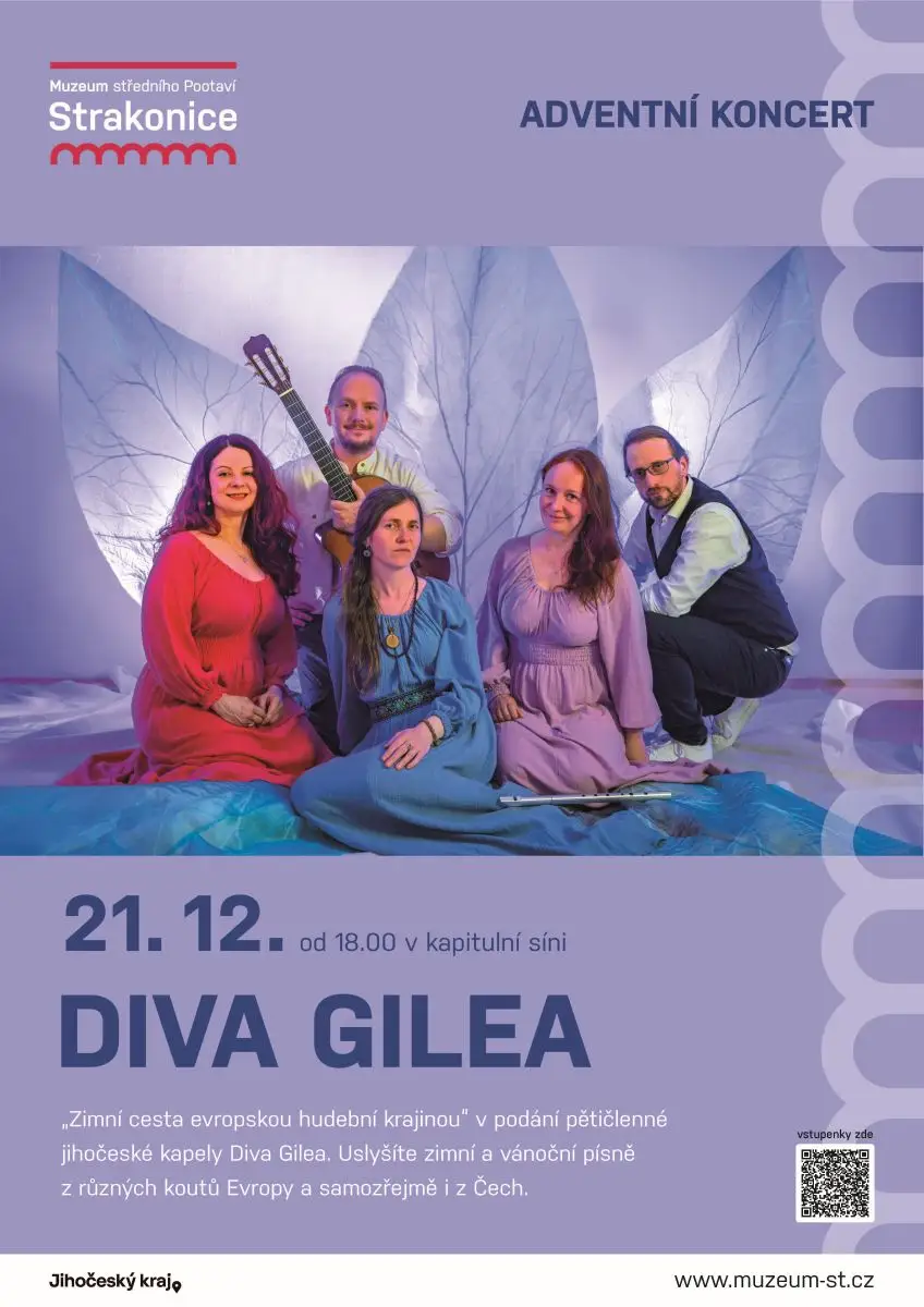 Adventní program „Zimní cesta evropskou hudební krajinou“ v podání pětičlenné jihočeské kapely Diva Gilea. Uslyšíte zimní a vánoční písně z různých koutů Evropy a samozřejmě i z Čech.