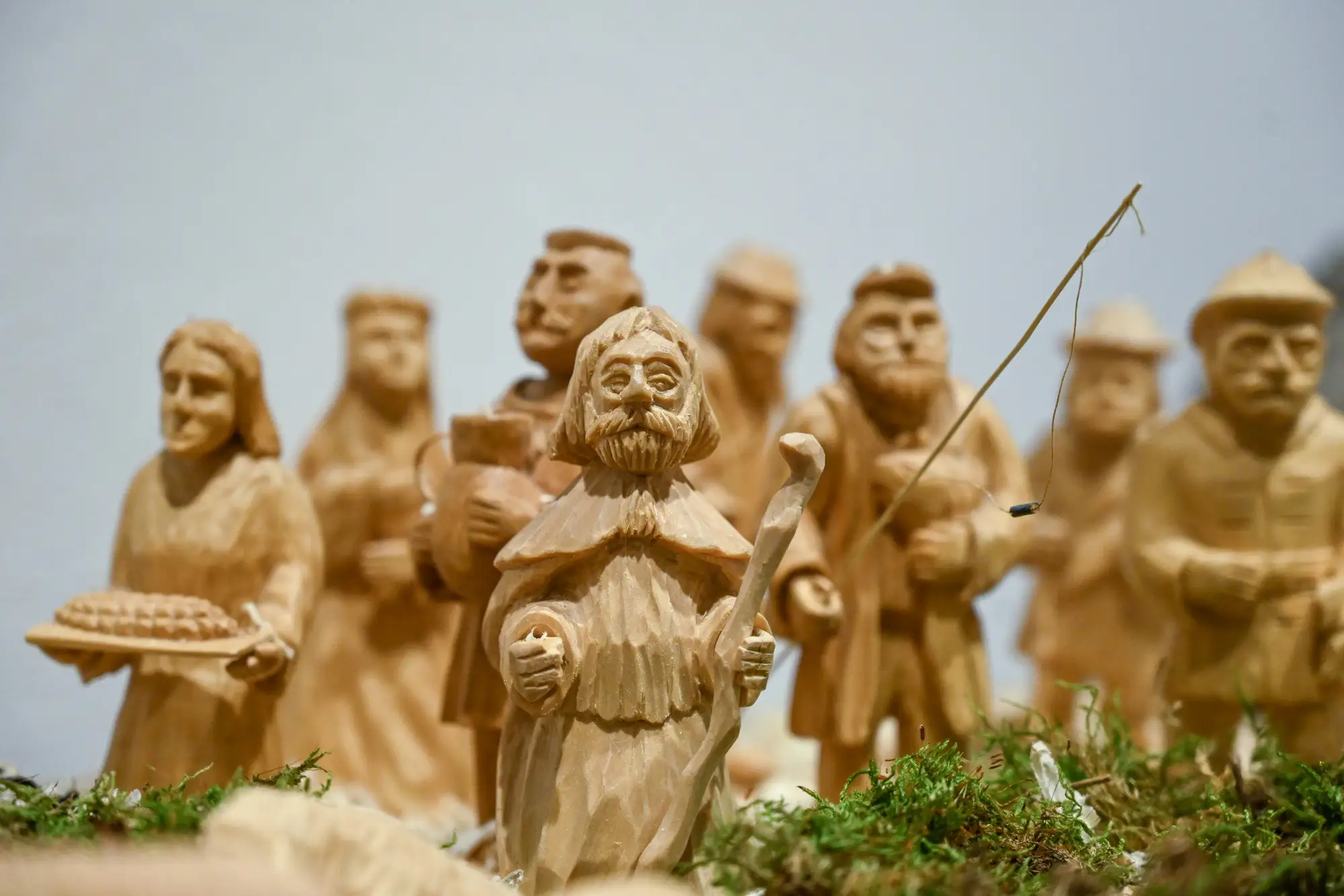 Historické figurky lidového řezbáře Josefa Rudovského (1931 - 2007) z Pičína a betlémy současného dřevořezbáře Jaroslava Muchla z Pražáku.