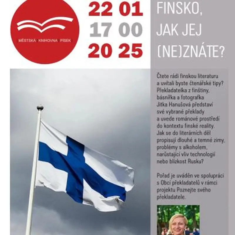 Čtete rádi finskou literaturu a uvítali byste čtenářské tipy? Překladatelka z finštiny, básnířka a fotografka Jitka Hanušová představí své vybrané překlady a uvede románové prostředí do kontextu finské reality. Pořad je uváděn ve spolupráci s Obcí překladatelů v rámci projektu Poznejte svého překladatele.