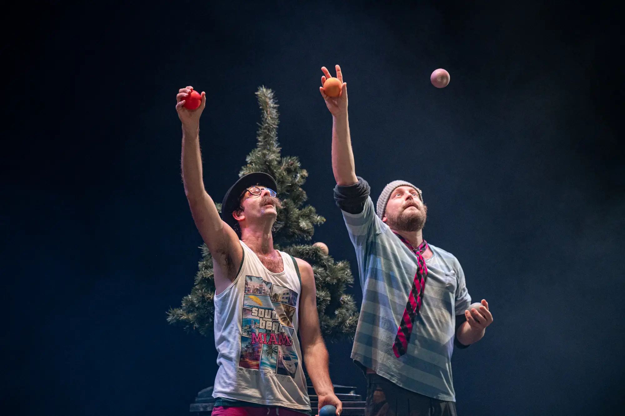 Vánoční groteska s prvky absurdity, s humorem a nadsázkou i se špetkou sváteční nostalgie. Dva bezdomovci na ulici, dva pastýři na cestě do Betléma, dva Bratři v tricku. Ke kouzlu Vánoc už schází jen popelnice, hromada tašek. A kapr…