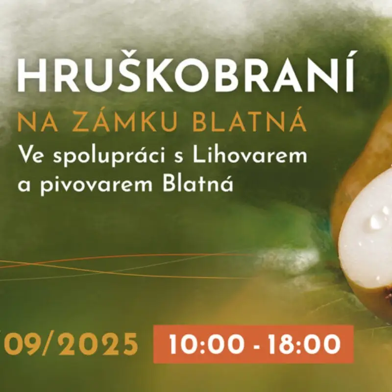 O víkendu 6. a 7. září 2025 ožije zámek Blatná a jeho okolí spolu s Lihovarem a pivovarem Blatná třetím ročníkem Hruškobraní. Čekají vás dva dny plné hruškových specialit, zábavy a rodinné pohody v jedinečné atmosféře historického zámku a zámeckého parku.