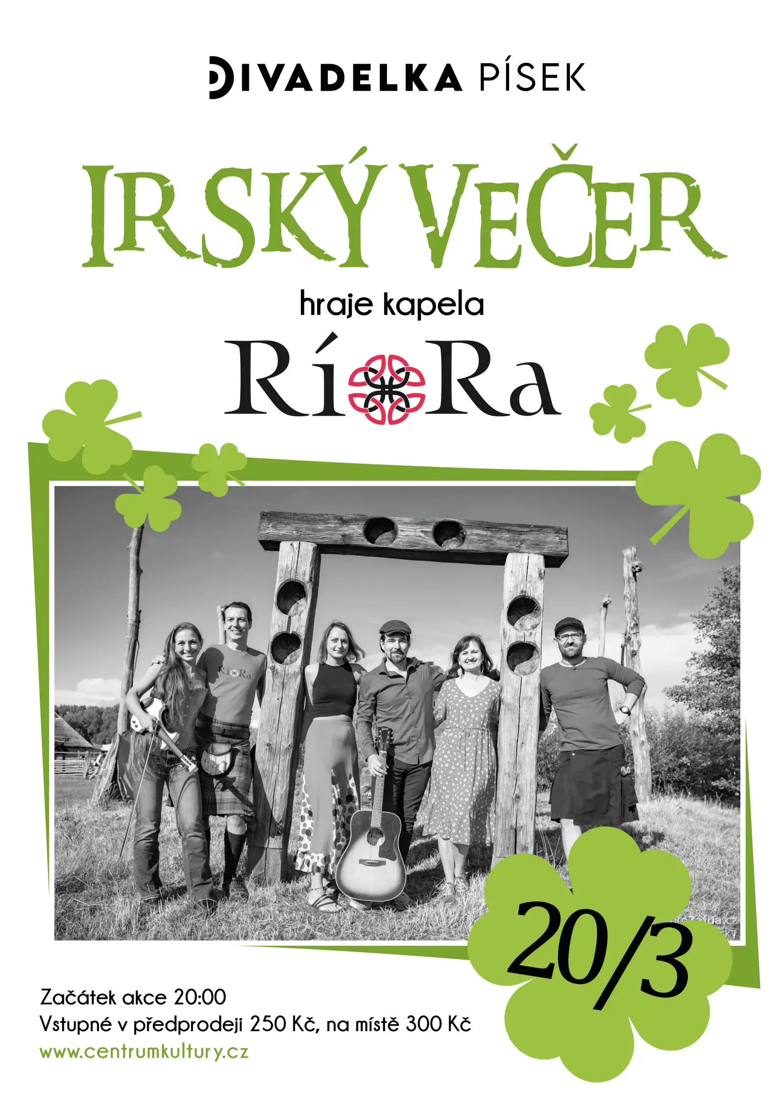 Přijďte si do Divadelky užít keltský folk. Kromě kapely Rí Ra se můžete těšit na tematickou výzdobu a typické irské občerstvení a nápoje.