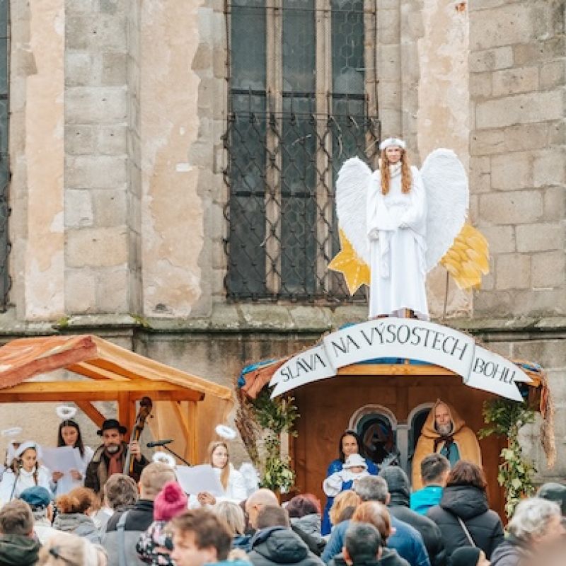V ohrádce u betlému si můžete také pohladit ovečky a beránka.