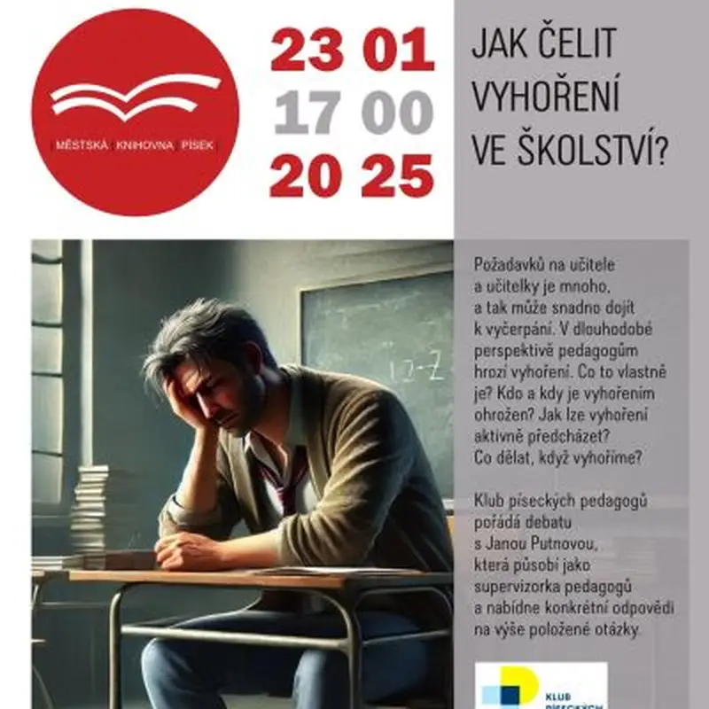 Požadavků na učitele a učitelky je mnoho, a tak může snadno dojít k vyčerpání. Co je vyhoření? Kdo a kdy je vyhořením ohrožen? Jak lze vyhoření aktivně předcházet? Co dělat, když vyhoříme? Klub píseckých pedagogů pořádá debatu s Janou Putnovou, která působí jako supervizorka pedagogů a nabídne konkrétní odpovědi na výše položené otázky.