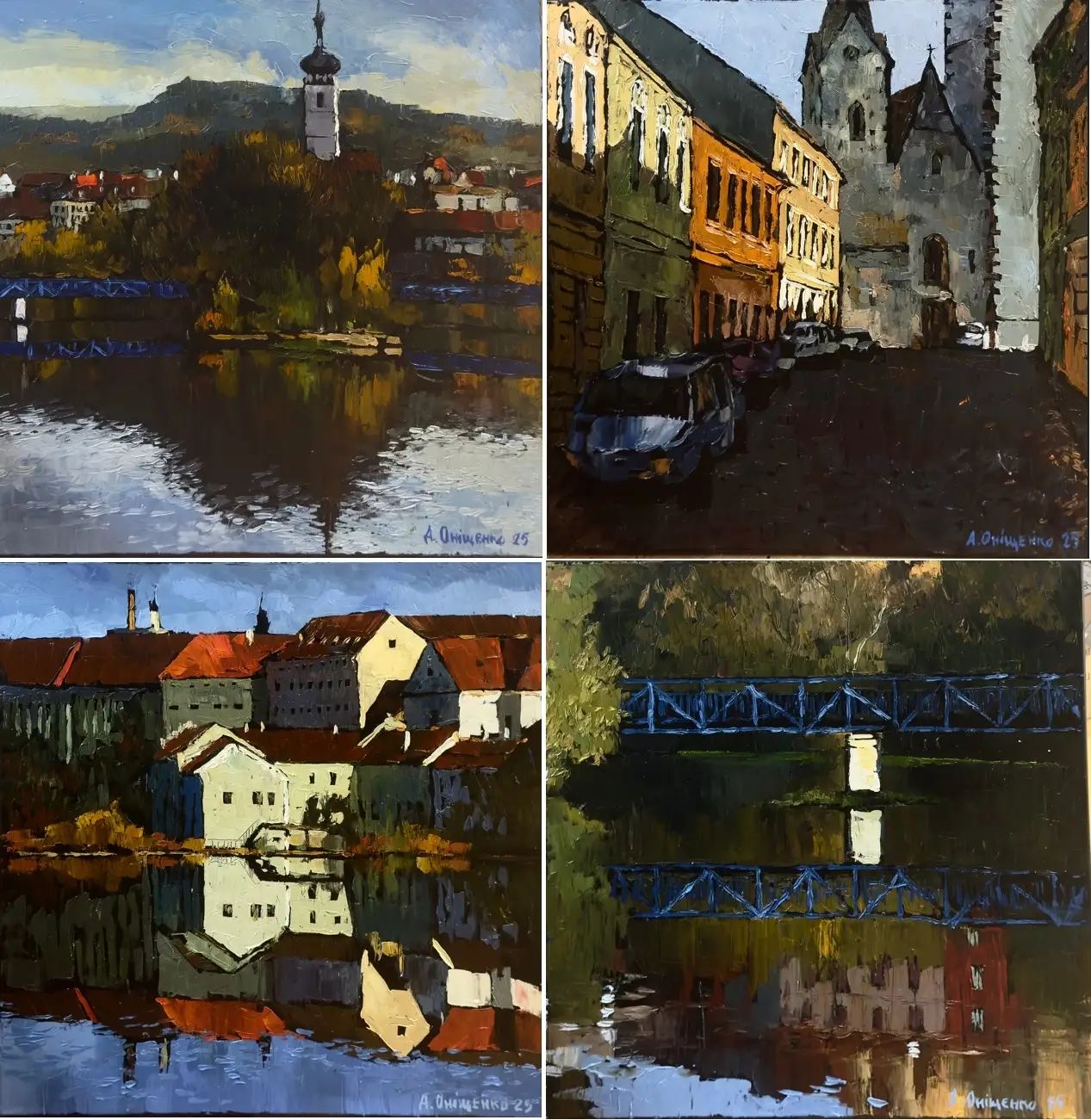 Alexander Onishenko se při svých návštěvách Písku nechal natolik unést atmosférou města, že vytvořil pět nových obrazů inspirovaných právě Pískem. I tentokrát zůstal věrný své originální technice malby na černé plátno, která jeho dílům dodává výraznou dramatičnost, hloubku a podmanivý vizuální efekt.