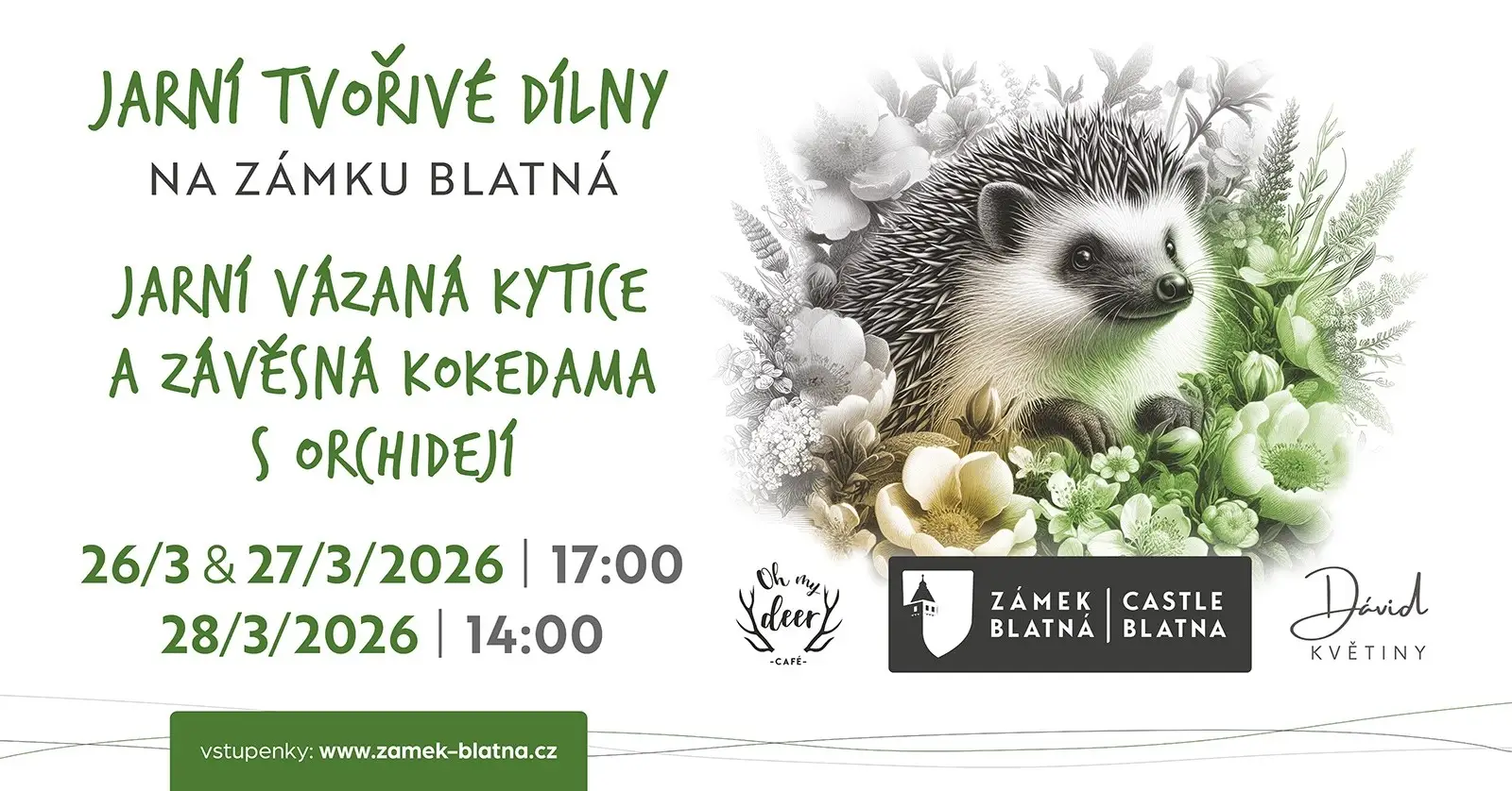 Součástí jarních tvořivých dílen je iunikátní velikonoční prohlídka zámku Blatná, při které zažijete velikonoční svátky v nejrůznějších zemích světa. Budeme společně cestovat do zemí, ve kterých žila rodina Hildprandtů, dozvíme se tedy, jak se slaví Velikonoce v Etiopii, Itálii, na Slovensku nebo u nás v jižních Čechách.