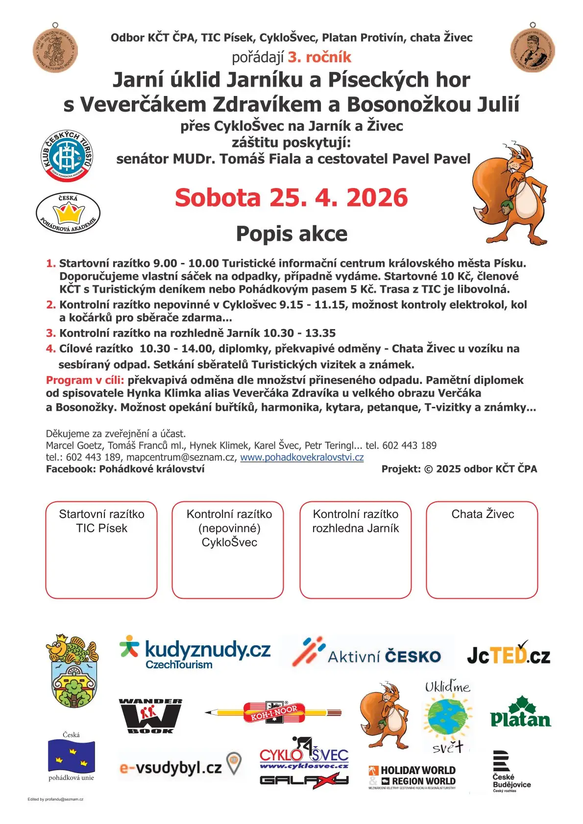 Jarní úklid Jarníku a Píseckých hor s Veverčákem Zdravíkem a Bosonožkou Julií přes CykloŠvec na Jarník a Živec
