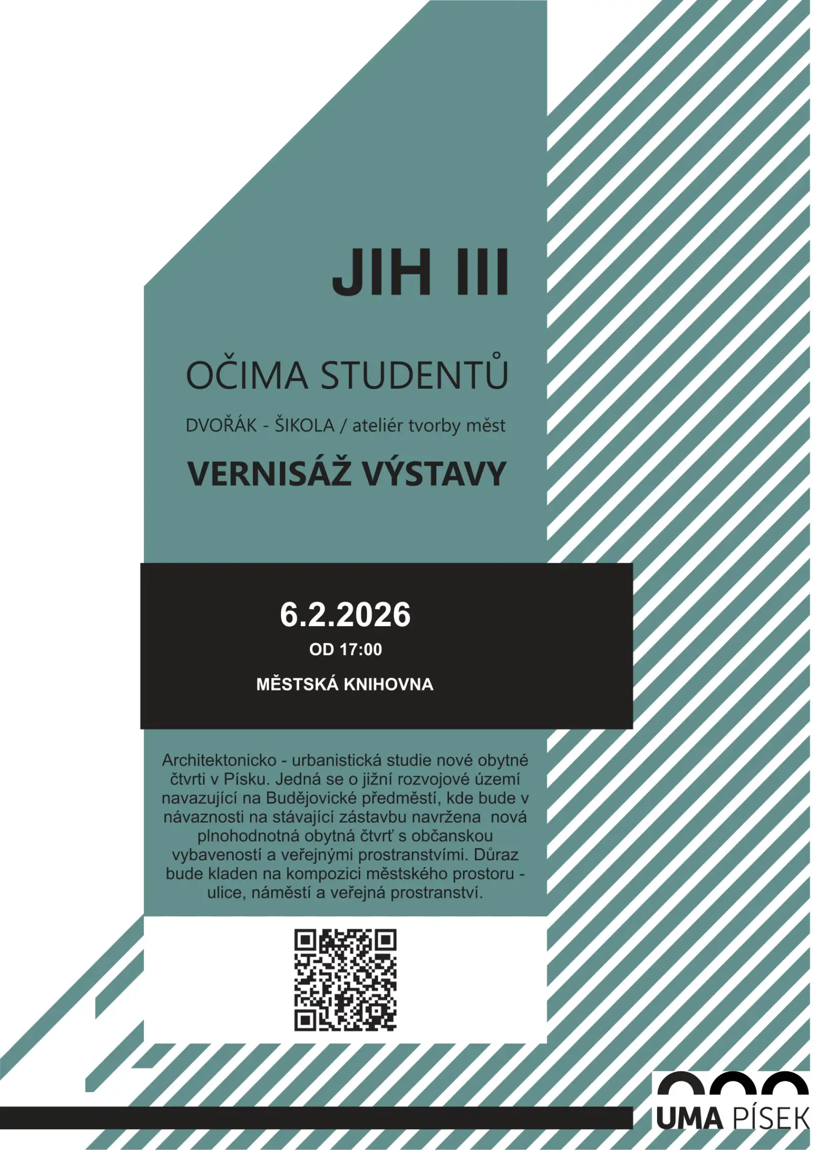 Architektonicko – urbanistická studie nové obytné čtvrti v Písku. Jedná se o jižní rozvojové území navazující na Budějovické předměstí, kde bude v návaznosti na stávající zástavbu navržena nová plnohodnotná obytná čtvrť s občanskou vybaveností a veřejnými prostranstvími. Důraz bude kladen na kompozici městského prostoru – ulice, náměstí a veřejná prostranství.