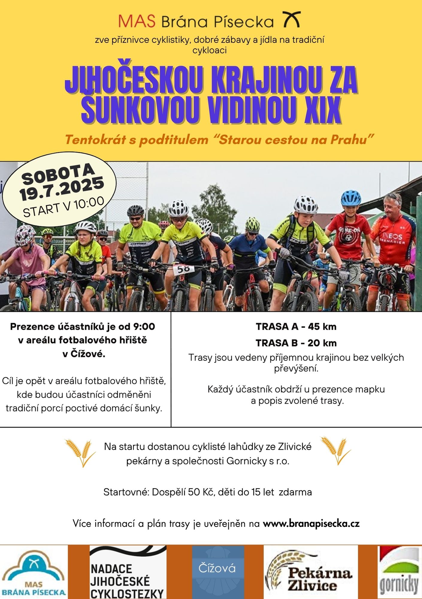 Tradiční cykloakce, tentokrát s podtitulem "Starou cestou na Prahu". Dvě trasy – 45 a 20 km - jsou vedeny příjemnou krajinou bez velkých převýšení. Registrace od 9 hodin, start v 10 hodin. Start i cíl je na fotbalovém hřišti v Čížové.
