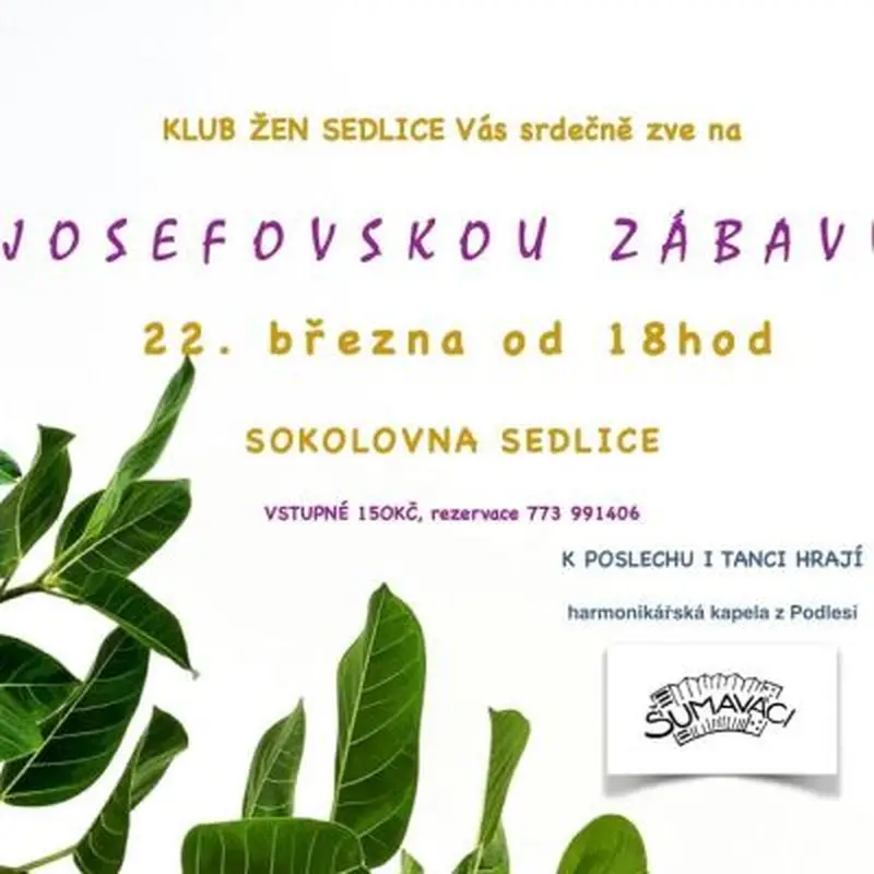 Po dlouhé době se do Sedlice vrací Josefovská zábava. Rezervace míst možná na telefonu 773 991406. K poslechu i tanci bude hrát šumavská harmonikářská skupina Šumaváci z Podlesí.