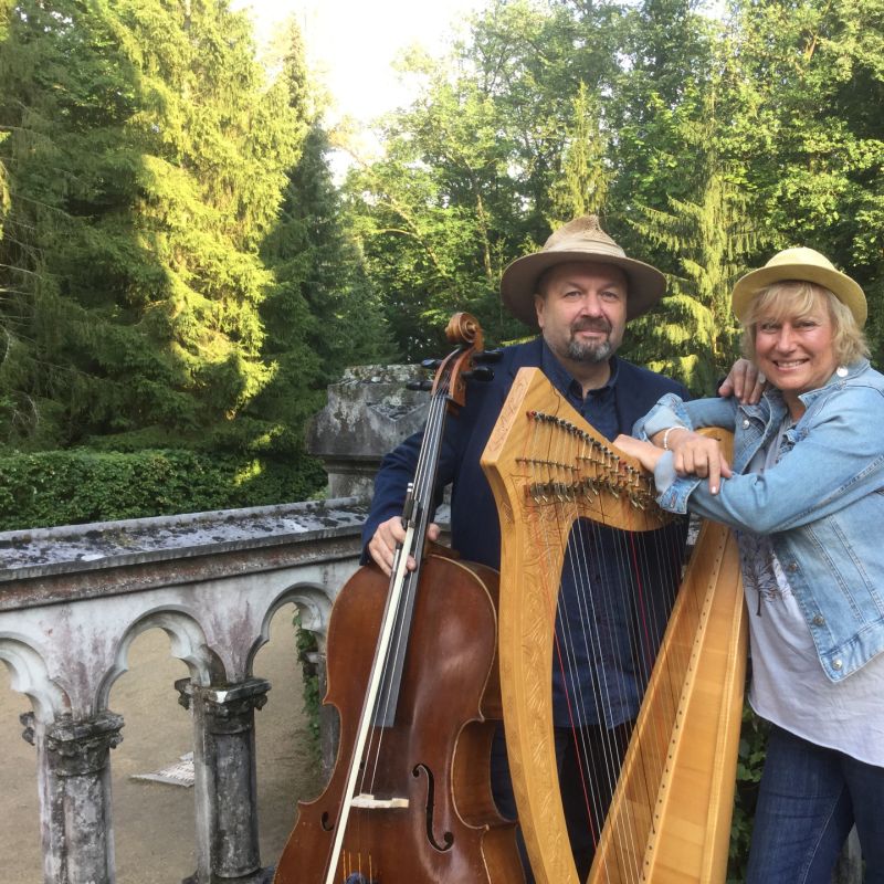 Kapela Bárka – violoncellista Pavel Barnáš s harfenistka Ivana Pokorná