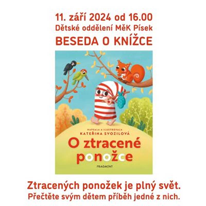 Ztracených ponožek je plný svět. Přečtěte svým dětem příběh jedné z nich. Přijďte si popovídat o ztracených ponožkách a nové dětské knížce s její autorkou Kateřinou Svozilovou. Navíc si děti užijí výtvarnou dílnu a odnesou si vlastnoručně pomalovaný kelímek na pití. Doporučený oděv – pruhované ponožky. / dětské oddělení