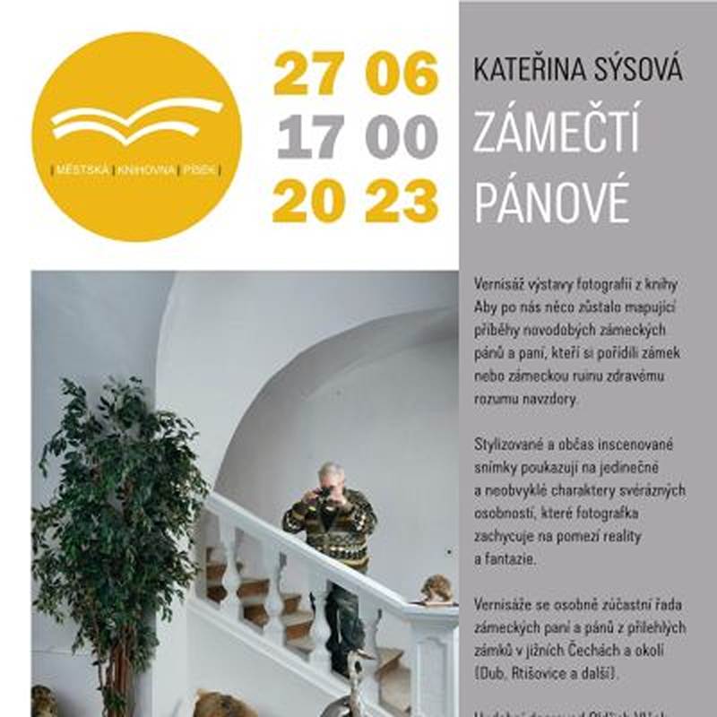 Vernisáž výstavy fotografií z knihy Aby po nás něco zůstalo mapující příběhy novodobých zámeckých pánů a paní, kteří si pořídili zámek nebo zámeckou ruinu zdravému rozumu navzdory. Vernisáže se osobně zúčastní řada zámeckých paní a pánů z přilehlých zámků v jižních Čechách a okolí.