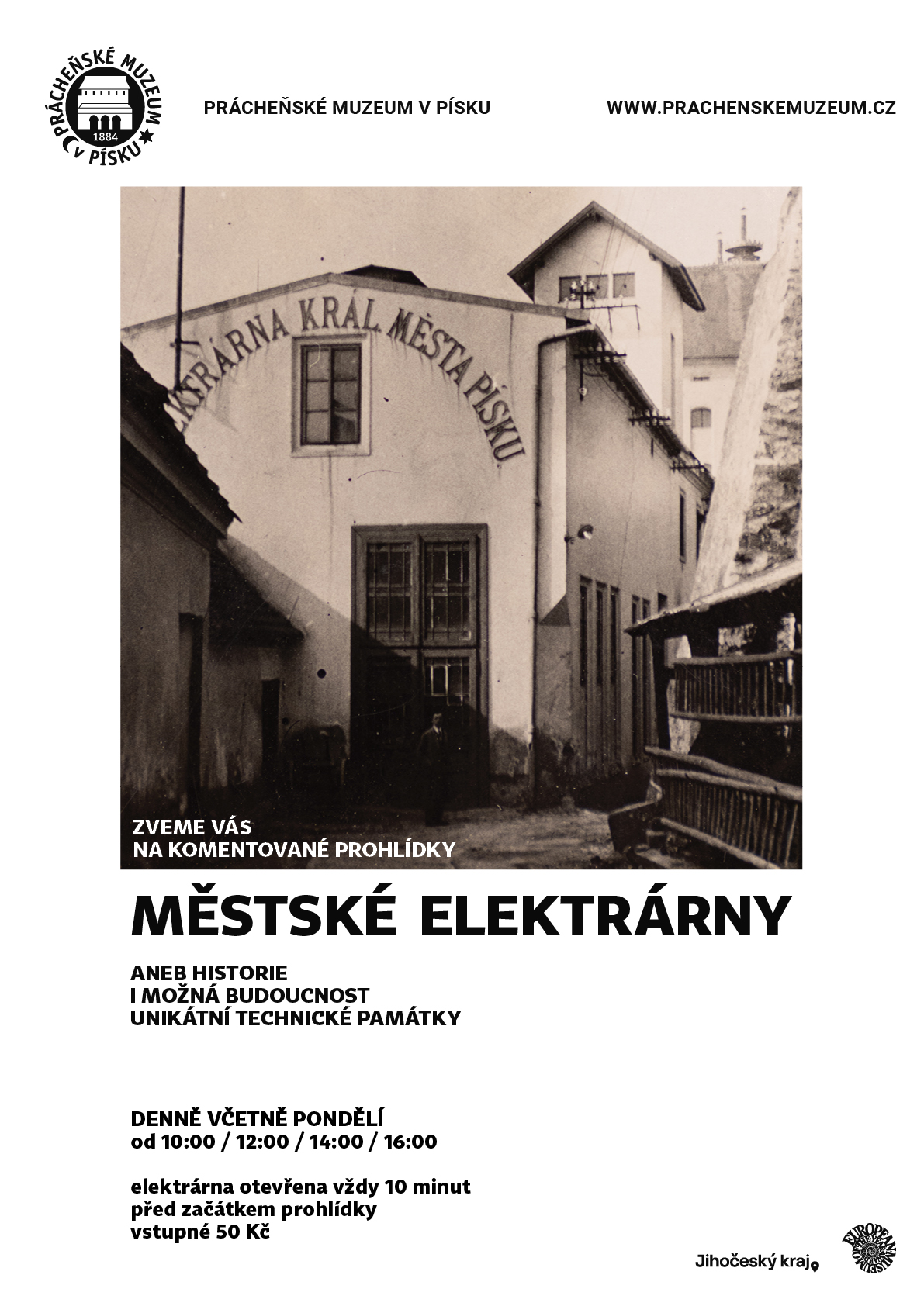 Prácheňské muzeum se od loňského podzimu snaží zpřístupnit městskou elektrárnu návštěvníkům formou komentovaných prohlídek, které se zabývají jak historií, tak možnou budoucností této unikátní památky. V červenci a srpnu bude památka přístupná denně, včetně pondělků, začátky prohlídek od 10, 12, 14 a 16 hodin. Jednotné vstupné je 20 korun a ideální je být na prohlídce v ulici Podskalí 5 minut před začátkem.