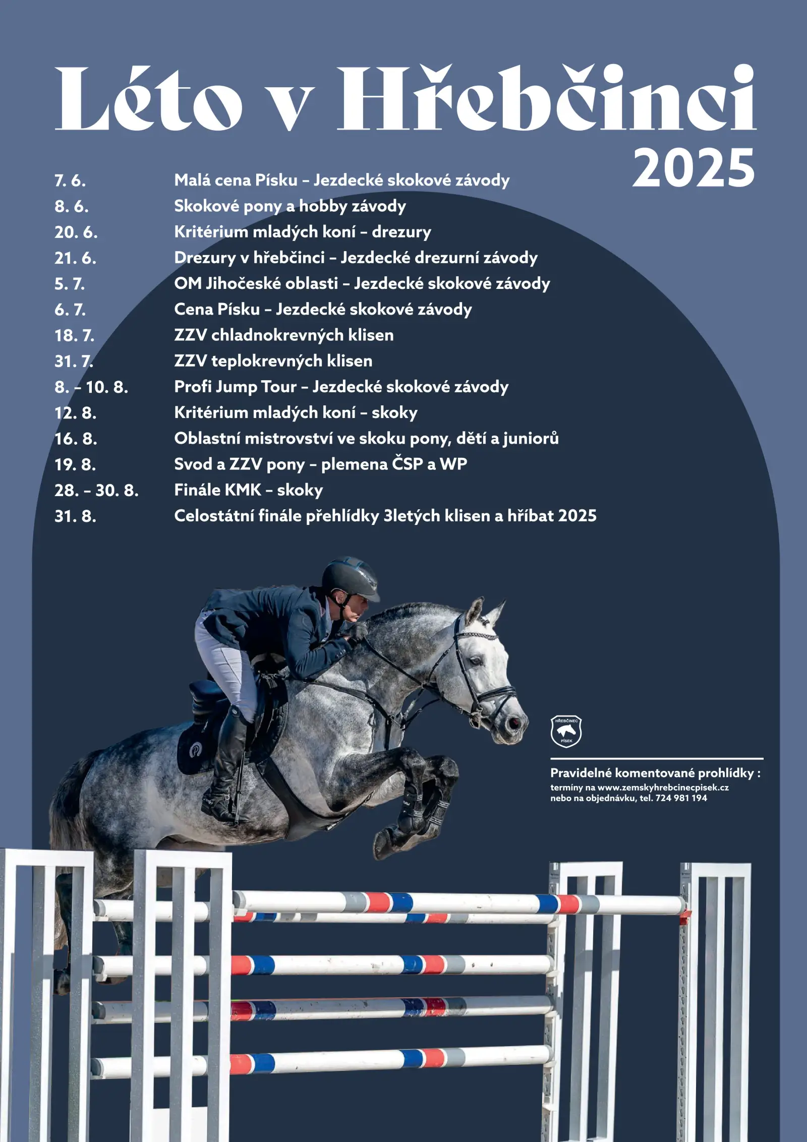 Zemský hřebčinec Písek připravil pro letošní rok nabitou letní sezónu, plnou sportovních a chovatelských akcí, přehlídek i zkoušek pro mladé koně. Všechny uvedené akce jsou volně přístupné pro širokou veřejnost.