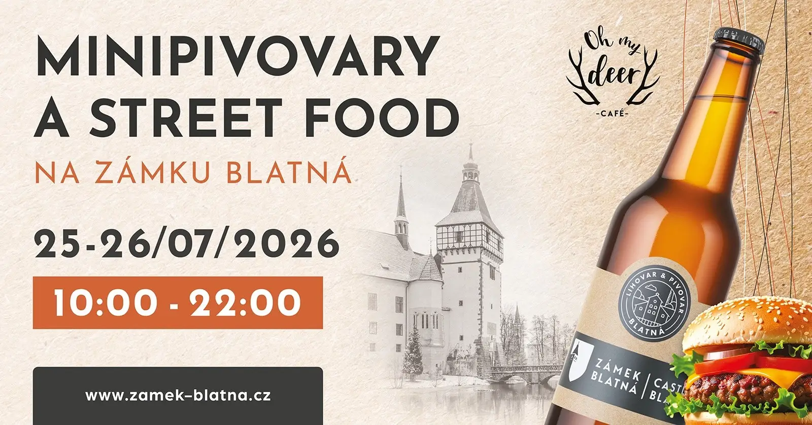 Na zámeckém nádvoří se můžete těšit na pestrou nabídku piva od několika minipivovarů a vychutnat si různé pochoutky z food stánků. Své letní menu nabídne i Oh My Deer Café a samozřejmostí je naše vynikající osvěžující zmrzlina.
