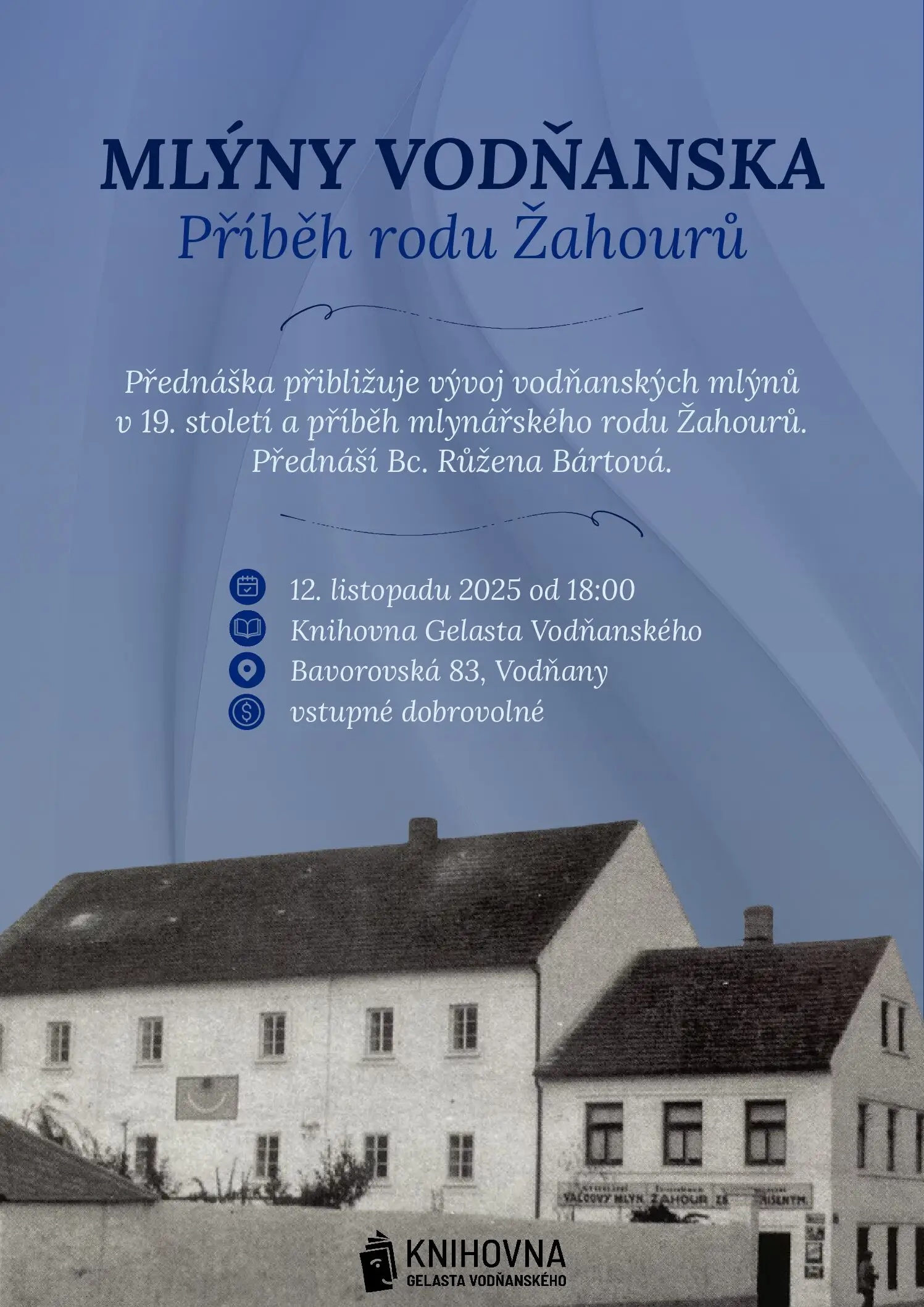Přednáška vám přiblíží, jak v 19. století vznikaly na vodňansku mlýny. Bc. Růžena Bártová vás tentokrát provede historií rodu Žahourů.