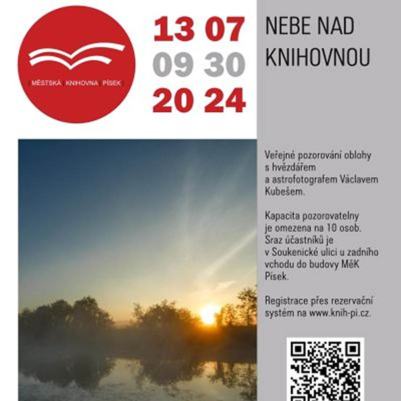 Veřejné pozorování Slunce s hvězdářem a astrofotografem Václavem Kubešem. Rezervace na www.knih-pi.cz