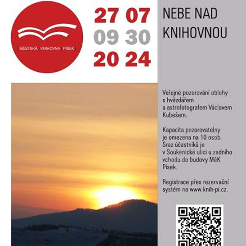 Veřejné pozorování Slunce s hvězdářem a astrofotografem Václavem Kubešem. Rezervace na www.knih-pi.cz