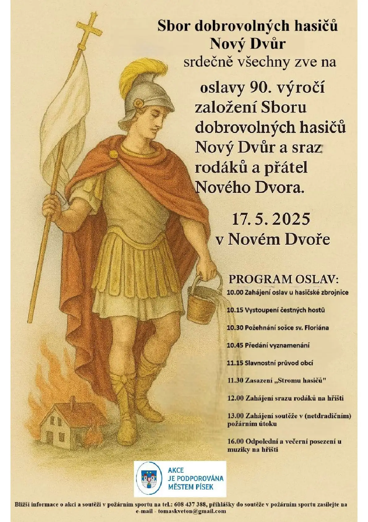 SDH Nový Dvůr srdečně všechny zve na oslavy 90. výročí založení Sboru dobrovolných hasčů a sraz rpdáků a přátel Nového Dvora.