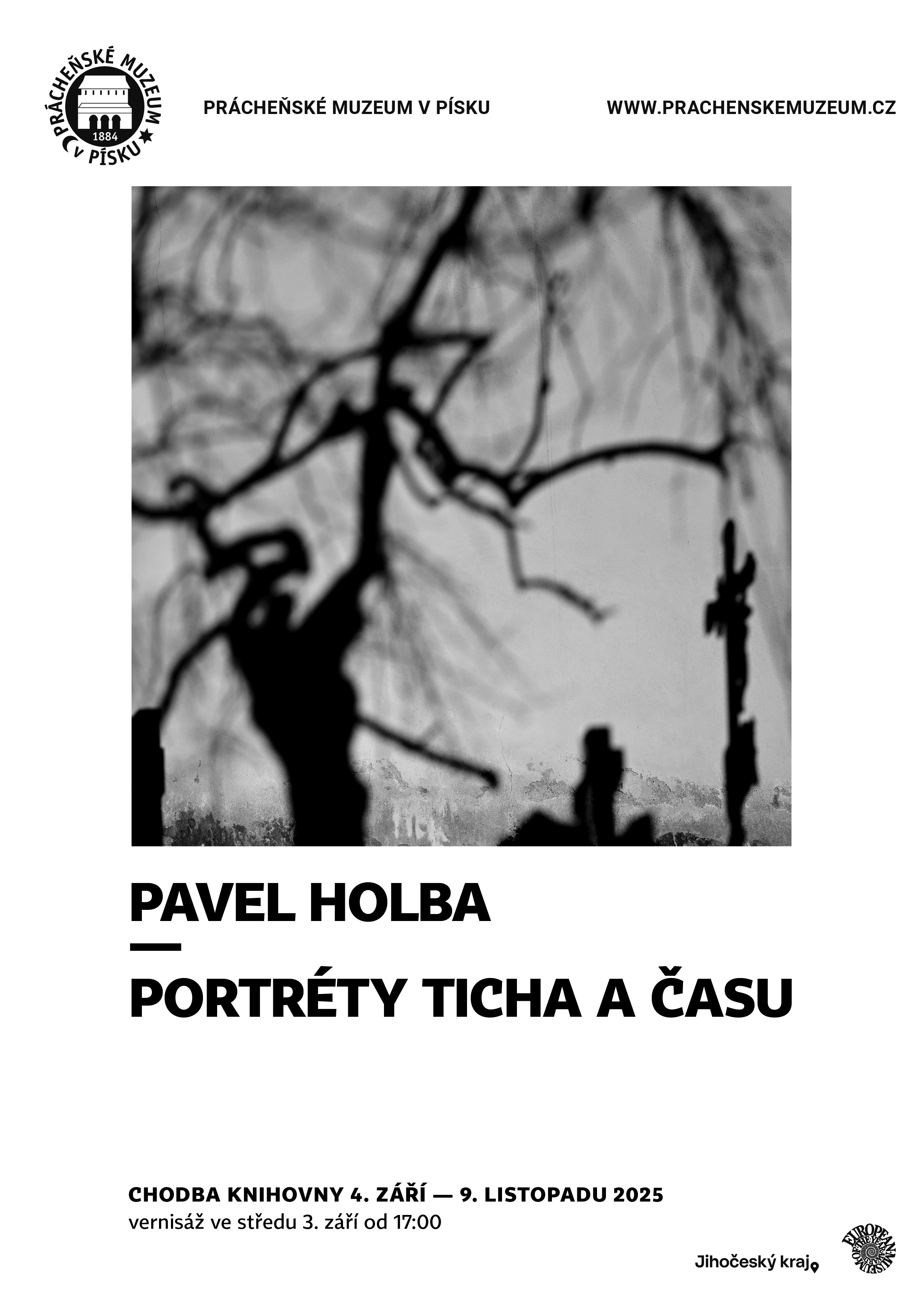 Autorská přehlídka snímků píseckého amatérského fotografa Pavla Holby (*1961) dostala název Portréty ticha a času. V jeho tvorbě převládají témata subjektivního dokumentu, reportáže a nalezených zátiší, včetně krajinného detailu. Nová výstava zahrnuje pět tematických okruhů – maškary, vernisáže, ulice, velký klid a portrét. Pavel Holba vystudoval Institut výtvarné fotografie při Svazu českých fotografů Praha pod vedením prof. Vladimíra Birguse. Je členem TeriFoto Sokol Písek. Dříve byl také členem Fotoklubu Písek (1986–2004), Spolku fotografů 2náct (2012–2014) a Prácheňské umělecké besedy (2011–2016). Má za sebou několik samostatných i skupinových výstav. Vernisáž za hudebního doprovodu skupiny Kérmideretvár připadá na středu 3. 9. od 17 hodin, 30. 9. autor provede veřejnost svou tvorbou na komentované prohlídce.