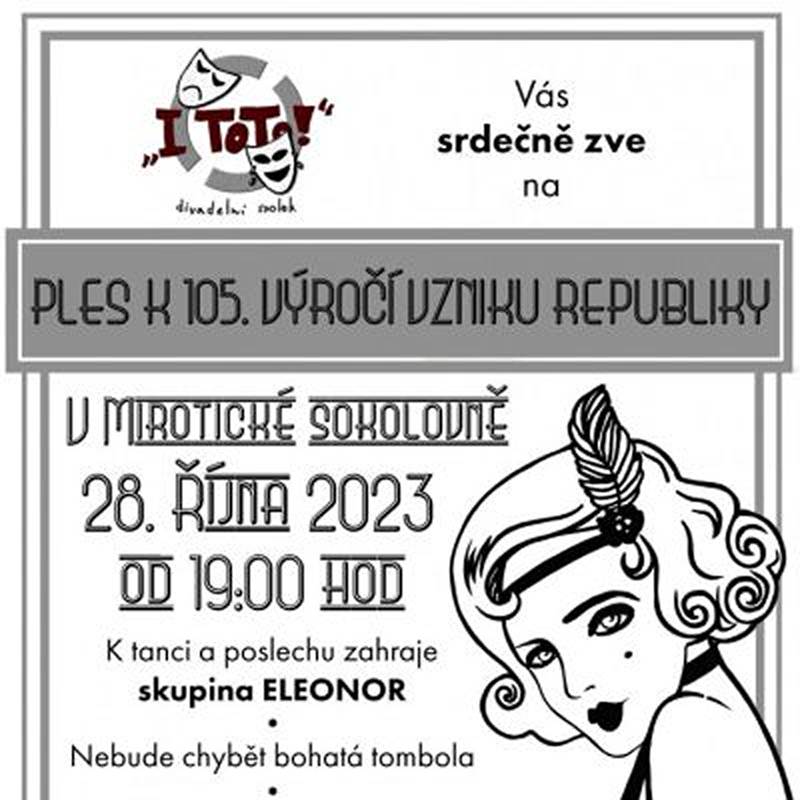 K tanci a poslechu hraje skupina Eleonor. Bohatá tombola, fotokoutek, prvorepublikové oblečení vítáno. Vstupné 109 Kč.