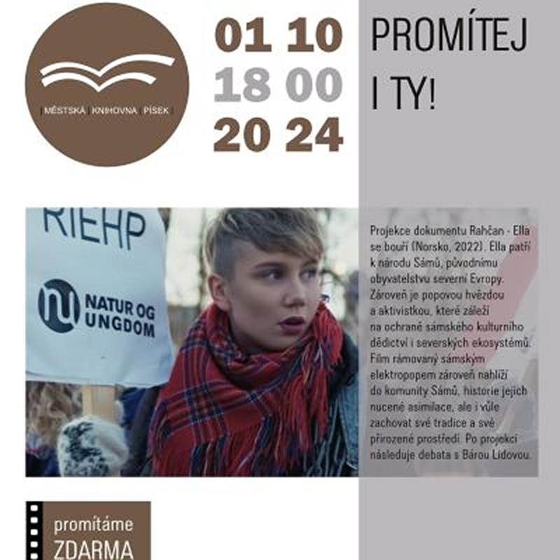 Projekce dokumentu Rahčan – Ella se bouří (Norsko, 2022). Film rámovaný sámským elektropopem zároveň nahlíží do komunity Sámů, historie jejich nucené asimilace, ale i vůle zachovat své tradice a své přirozené prostředí. Po projekci následuje debata s Bárou Lidovou.
