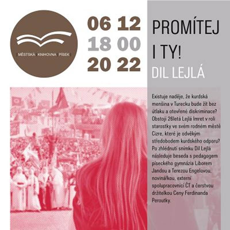 Po zhlédnutí snímku Dil Lejlá následuje beseda s pedagogem píseckého gymnázia Liborem Jandou a Terezou Engelovou, novinářkou, externí spolupracovnicí ČT a čerstvou držitelkou Ceny Ferdinanda Peroutky. / přednáškový sál