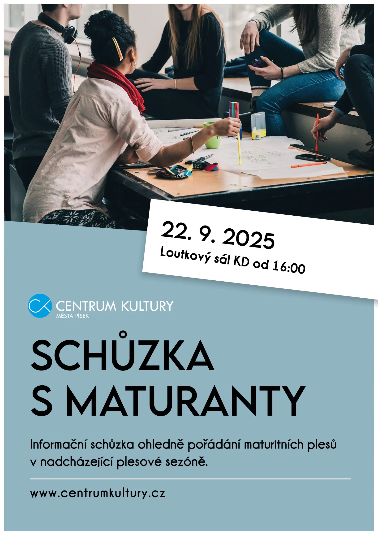 Informační schůzka pro budoucí maturanty ohledně pořádání maturitních plesů v nadcházející plesové sezóně.