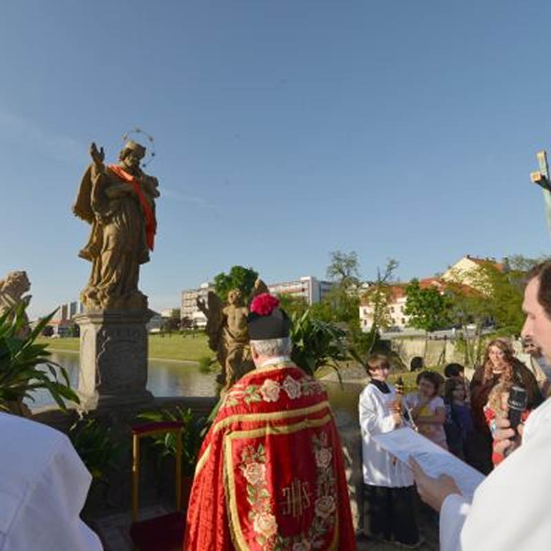Procesí k soše sv. Jana Nepomuckého.