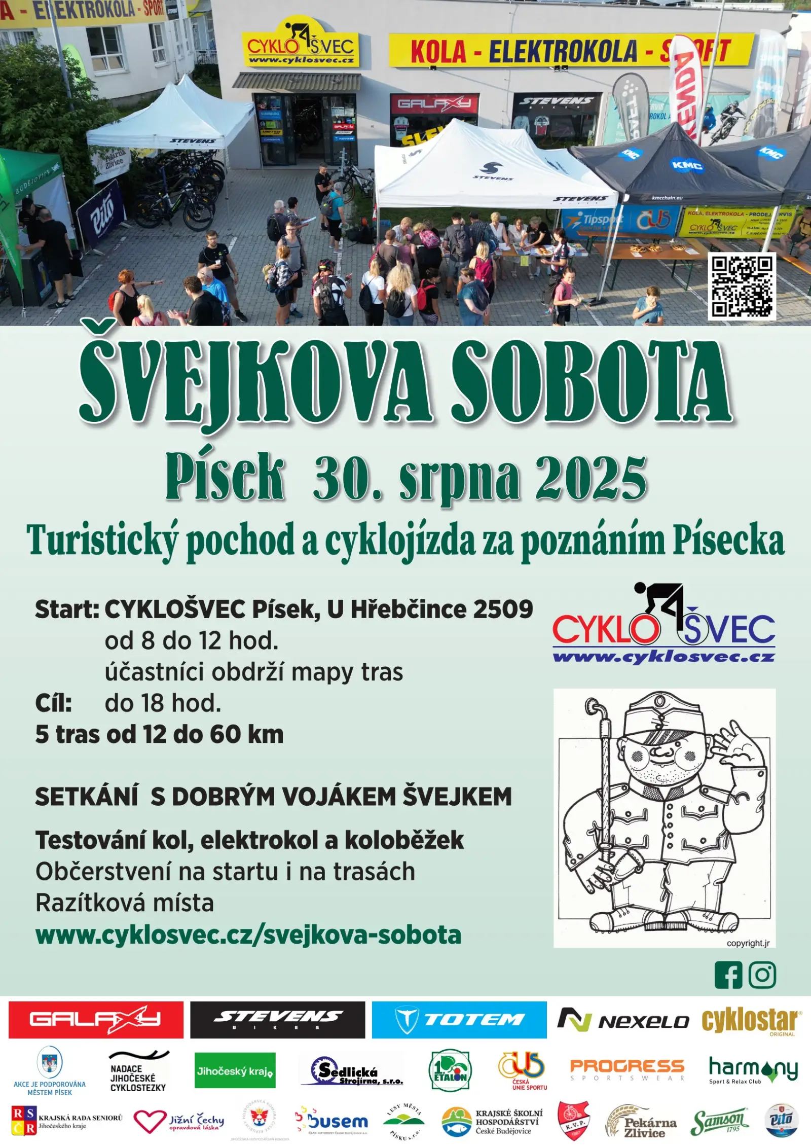 V sobotu 30.srpna 2025 se v Písku uskuteční Turistický pochod a cyklojízda Švejkova sobota, který nabízí možnost bližšího poznání Písecka.