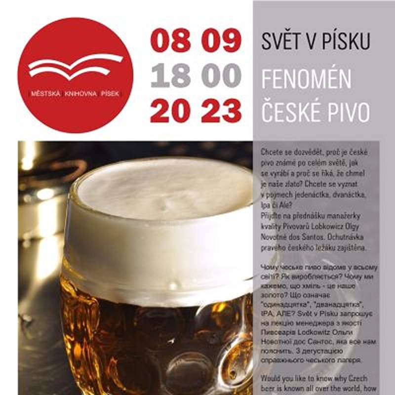 Chcete se dozvědět, proč je české pivo známé po celém světě, jak se vyrábí a proč se říká, že chmel je naše zlato? Chcete se vyznat v pojmech jedenáctka, dvanáctka, Ipa či Ale? Přijďte na přednášku manažerky kvality Pivovarů Lobkowicz Olgy Novotné dos Santos. Ochutnávka pravého českého ležáku zajištěna.