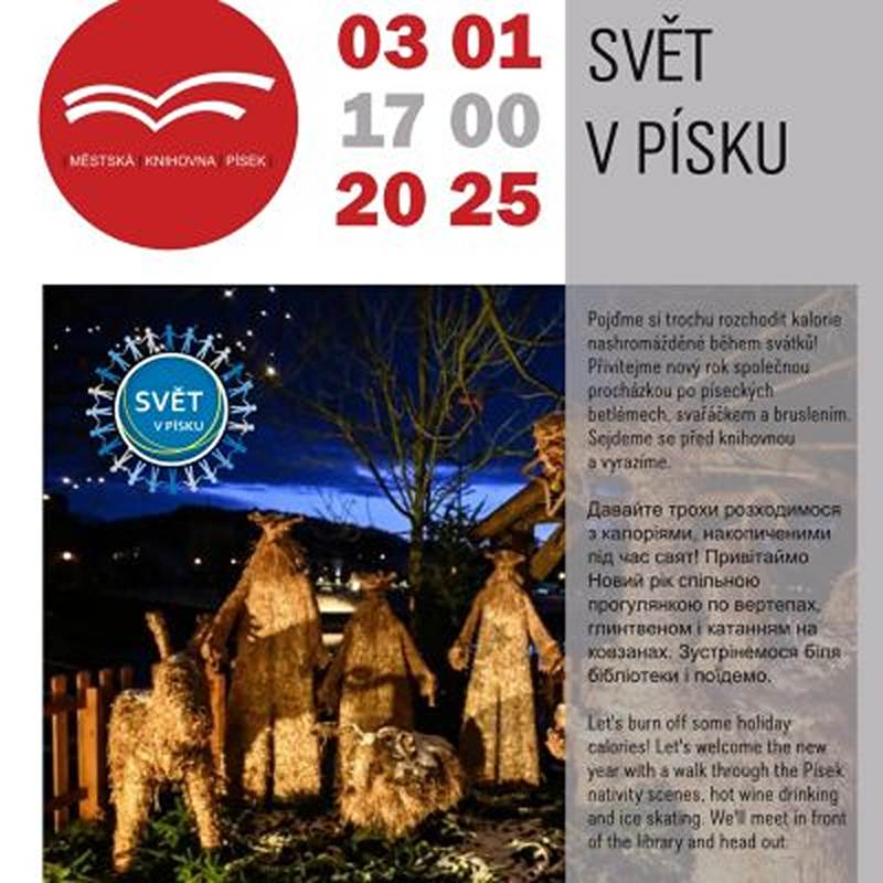 Pojďme si trochu rozchodit kalorie nashromážděné během svátků! Přivítejme nový rok společnou procházkou po píseckých betlémech, svařáčkem a bruslením. Sejdeme se před knihovnou a vyrazíme.